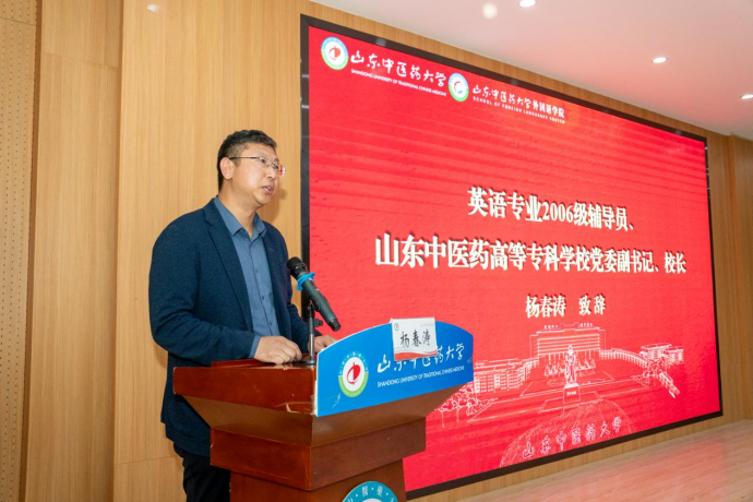11月15日上午,我校外国语学院校友会成立大会在时珍楼第一报告厅隆重举行。副校长张玉龙出席为校友会授旗并讲话,2006级英语专业辅导员、山东中医药高等专科学校党委副书记、校长杨春涛出席大会并致辞。